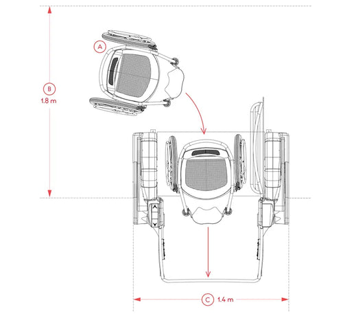 You need around 1.8m from the pool edge to a wall or obstacle behind the Poolpod 2.0 in order to easily enter the pool.